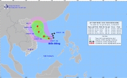 Vùng áp thấp đã mạnh lên thành áp thấp nhiệt đới