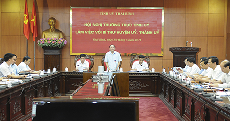 Thường trực Tỉnh ủy làm việc với các bí thư huyện ủy, thành ủy về công tác chuẩn bị nhân sự phục vụ kỳ họp thứ nhất, HĐND cấp huyện, cấp xã nhiệm kỳ 2016 - 2021