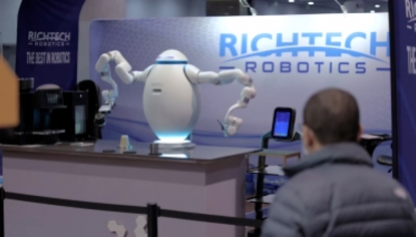 Được sáng tạo bởi Richtech Robotics, ADAM là robot hai tay, có thể tương tác với khách hàng, nhận đơn đặt hàng và pha chế trong vài phút.