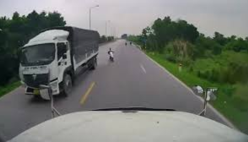 Tình huống giao thông: Vượt ở điểm mù, xe máy lao thẳng vào xe đầu kéo