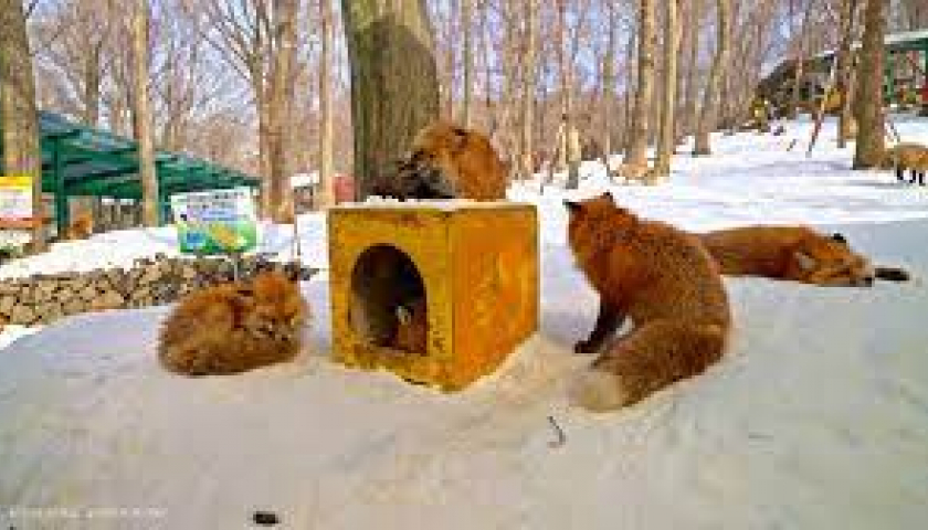 Mùa tuyết trắng ghé thăm làng cáo hoang dã tại Nhật Bản
