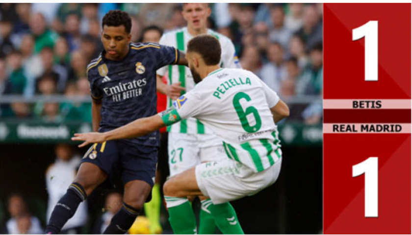 Bàn thắng Betis vs Real Madrid: 1-1 (Vòng 16 La Liga 2023/24)