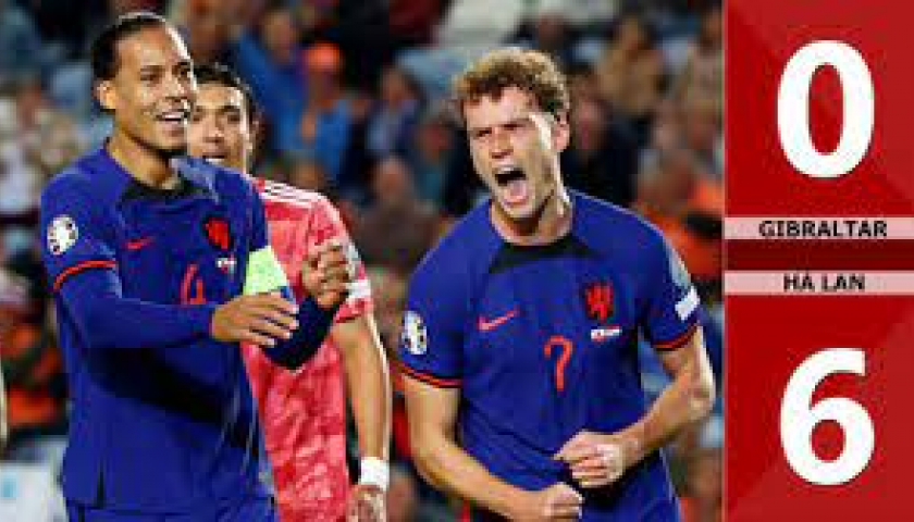Kết quả Gibraltar 0-6 Hà Lan (Vòng loại EURO 2024)