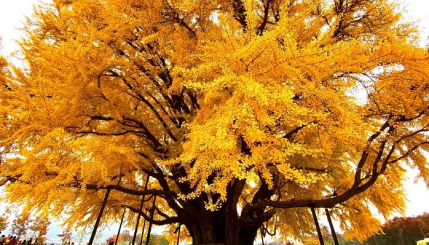 Wonju Bangye-ri Ginko, cây bạch quả hơn 800 năm tuổi nằm tại làng Bangye-ri đang bước vào thời kỳ đẹp nhất trong năm, khi lá đồng loạt chuyển vàng.
