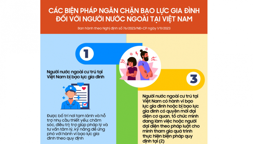 Các biện pháp bảo vệ người nước ngoài cư trú tại Việt Nam khi bị bạo lực gia đình thực hiện theo nội dung của Nghị định số 76/2023/NĐ-CP vừa được Chính...