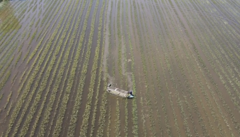Nông dân miền Tây chế xuồng thu hoạch lúa