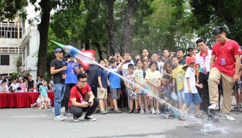 Hơn 3000 người tham dự, 600 thí sinh từ hai cuộc thi robot, bắn tên lửa nước cùng hòa mình tham gia các thử thách, tương tác tại Đại học Bách khoa Hà...