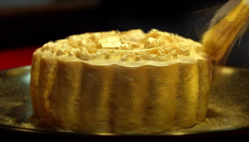 Kết hợp nghề làm bánh lâu đời và thủ công mỹ nghệ của gia đình, anh Vũ Long làm ra hàng trăm bánh trung thu dát vàng lá thực phẩm.