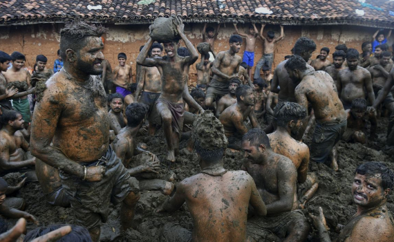 Lễ hội ném bùn nổi tiếng ở Ấn Độ