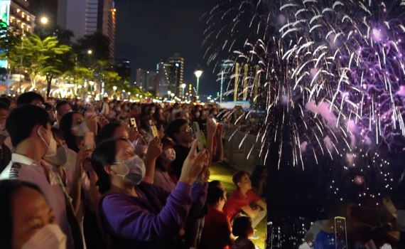 Màn bắn pháo hoa tầm cao 15 phút tại khu vực đầu đường hầm sông Sài Gòn tối 30/4 thu hút hàng nghìn người đến chiêm ngưỡng.
