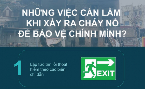 Khi xảy ra cháy nổ, cần hết sức bình tĩnh và tìm lối thoát hiểm theo các biển chỉ dẫn, sử dụng khăn, quần áo ướt để choàng lên người và di chuyển sát mặt...