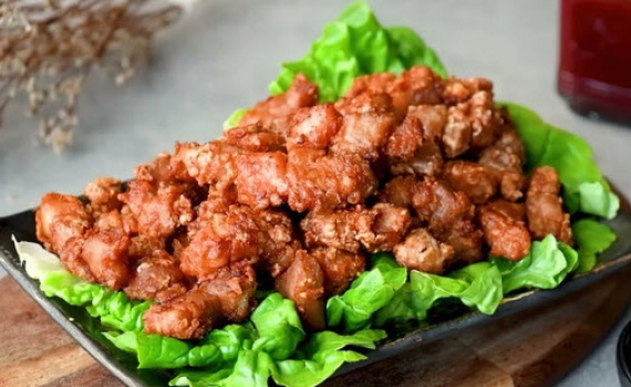Thịt heo được chế biến với chao có kết cấu giòn rụm và hương vị thơm đậm đà, thích hợp dùng làm món nhậu hoặc ăn kèm cơm.