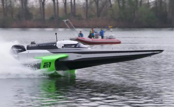 RaceBird, thuyền đua chạy bằng điện đầu tiên trên thế giới, nặng khoảng 800 kg với vận tốc tối đa hơn 90 km/h.