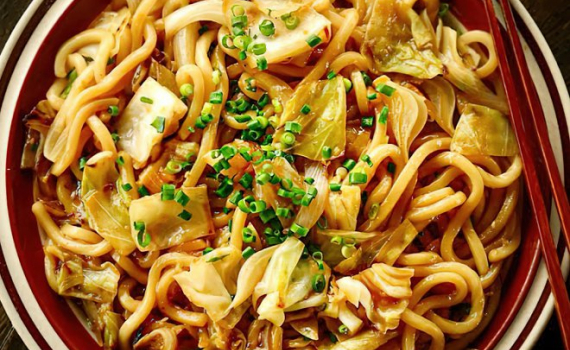Chỉ với những nguyên liệu đơn giản, bạn yêu nội trợ có thể chế biến được món mì udon dai mềm kèm cải bắp.