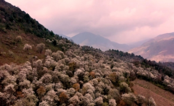 Rừng hoa táo mèo đẹp như tranh vẽ trên sườn núi Lùng Cúng