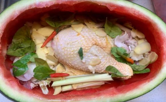 Gà hấp trong dưa hấu, món ngon bất ngờ bạn nên thử