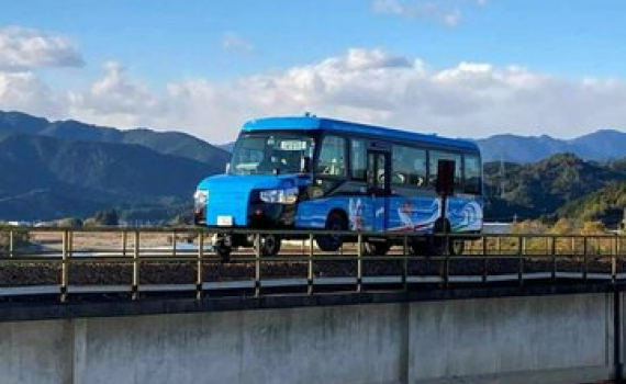 Phương tiện giao thông này có 2 chế độ chạy trên đường bộ và đường sắt, đang hoạt động tại thị trấn Kaiyo, tỉnh Tokushima, Nhật Bản.
