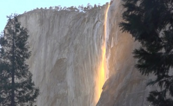Thác Horsetail nằm trong Công viên quốc gia Yosemite, California, Mỹ xảy ra hiện tượng ''thác lửa'' khi Mặt Trời lặn chiếu vào dòng nước.