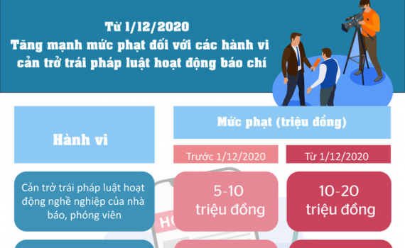 Từ ngày 1/12/2020, mức phạt đối với hành vi cản trở trái pháp luật hoạt động báo chí có thể lên tới 60 triệu đồng.