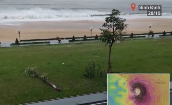 Khoảng 12h00 ngày 28/10, bão số 9 đã đi vào các tỉnh từ Quảng Nam đến Bình Định.