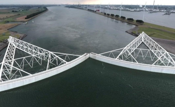 Hàng rào chắn sóng Maeslantkering (Hà Lan) gây ấn tượng với 2 cánh cửa thép nặng 6.800 tấn, có thể đóng, mở tự động, ngăn nước tràn từ biển trong cơn bão...