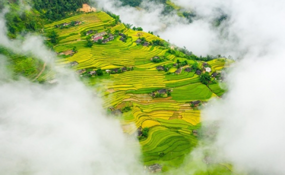 Bản Phùng là điểm săn lúa đẹp nức tiếng ở Hoàng Su Phì (Hà Giang). Năm nay, lúa trên rẻo cao nơi đây chín sớm, vẽ lên bức tranh mùa vàng ẩn hiện trong mây...