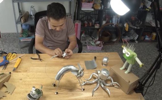 Từ những vật dụng bỏ đi như chai lọ, thùng carton... một người thanh niên ở (Đông Anh, Hà Nội) đã biến chúng thành những đồ chơi sáng tạo dành cho trẻ...