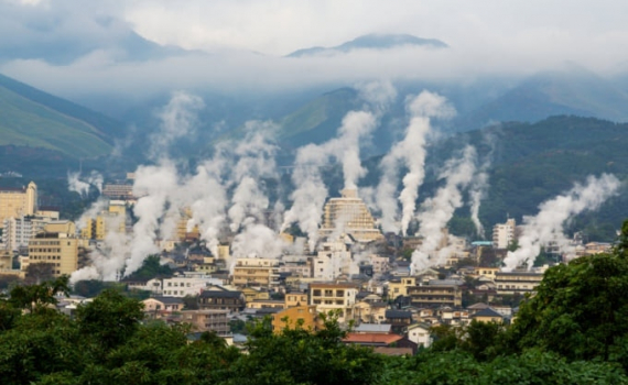Nhìn từ xa, du khách có thể thấy những cột hơi nước bốc lên liên tục suốt ngày đêm ở Beppu, nơi được mệnh danh là "thủ phủ suối nước nóng" của Nhật...