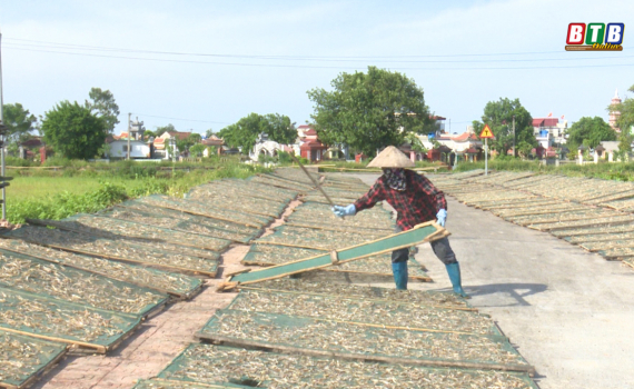 Ngư dân Thái Thụy tận dụng ngày nắng chế biến thủy hải sản