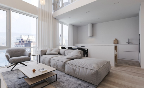 Tầng lửng kết hợp màu sơn trắng, nội thất tối giản đã giúp mở rộng diện tích căn hộ, từ đó tối đa hóa công năng sử dụng, làm nổi bật sự sang trọng.