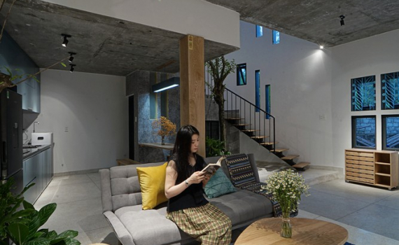 Bếp được đặt ở trung tâm căn nhà giúp người mẹ có thể vừa làm bếp vừa trông con chơi đùa.