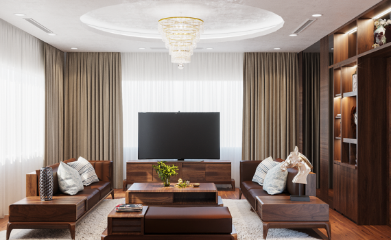 Không gian nội thất nhà phố sang trọng với gỗ óc chó