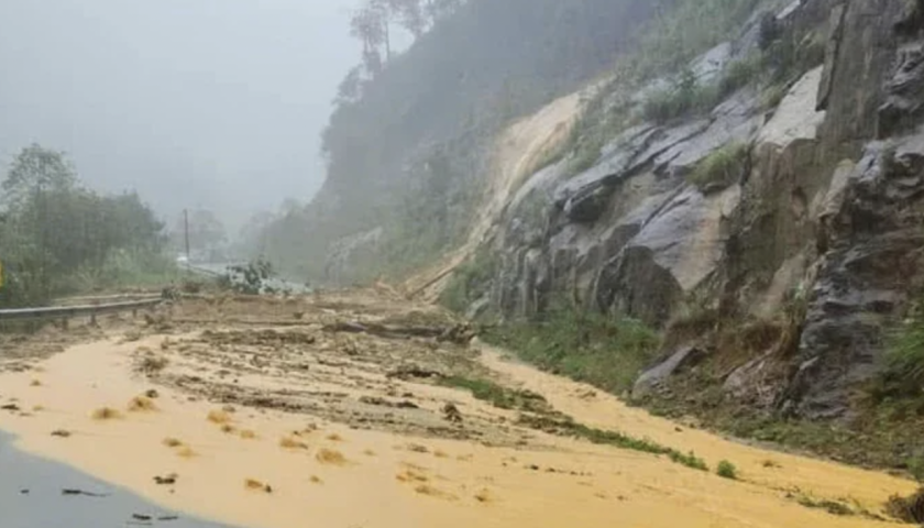Ba vị trí sạt lở xảy ra trên quốc lộ 27C – tuyến đường nối hai thành phố Nha Trang và Đà Lạt khiến đất đá tràn xuống bịt kín mặt đường, giao thông tê liệt...
