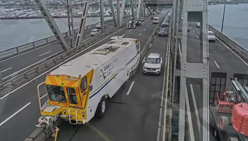 New Zealand - Cỗ máy đặc biệt di chuyển các khối bê tông, thay đổi làn đường trên cầu Auckland Harbour chỉ trong ít phút.