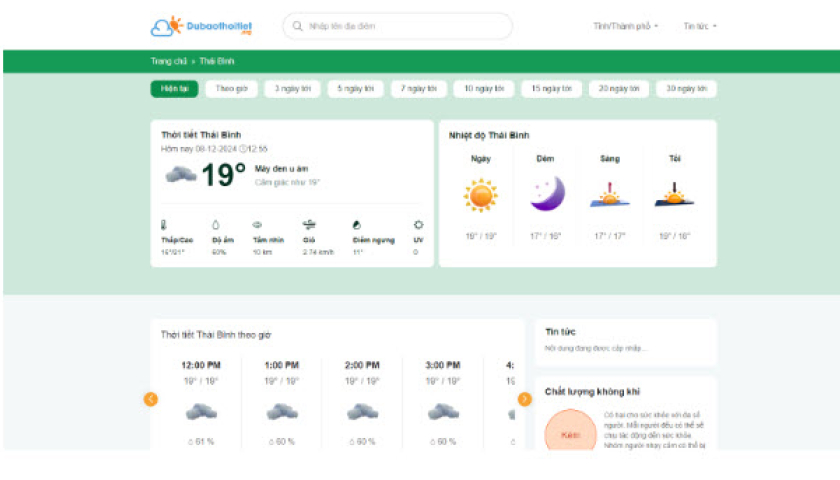 Xem dự báo thời tiết Thái Bình dễ dàng tại dubaothoitiet.org
