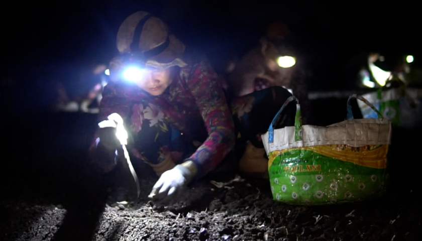 Thay vì ban ngày, nhiều người trồng kiệu ở huyện Tam Nông làm đất, xuống giống vào ban đêm để tránh nắng.