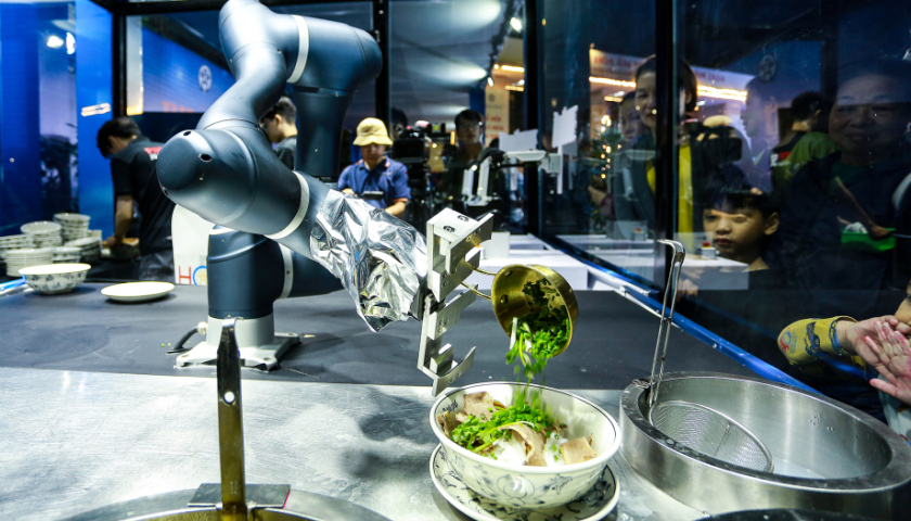 Thực khách hào hứng chờ robot làm phở Hà Nội
