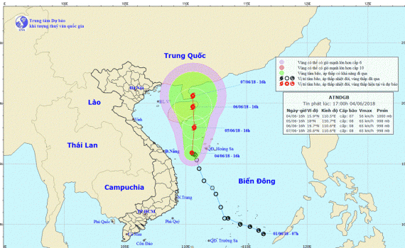 Hồi 16 giờ ngày 04/6, vị trí tâm áp thấp nhiệt đới ở vào khoảng 15,9 độ Vĩ Bắc; 110,5 độ Kinh Đông, trên khu vực vùng biển phía Tây Nam quần đảo Hoàng Sa....