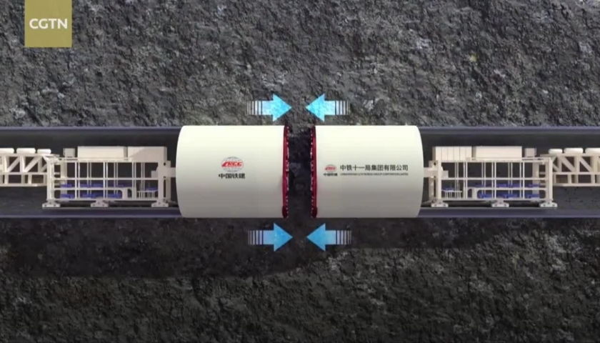 Công đoạn đào đất để xây dựng đường hầm Jintang, hầm đường sắt cao tốc dưới biển dài nhất thế giới.