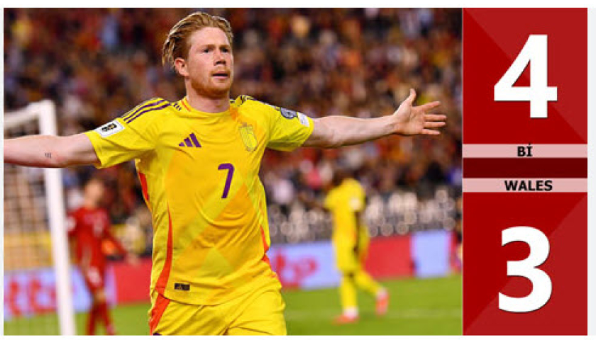 Kết quả bàn thắng Bỉ vs Wales: 4-3 (Vòng loại World Cup 2026)