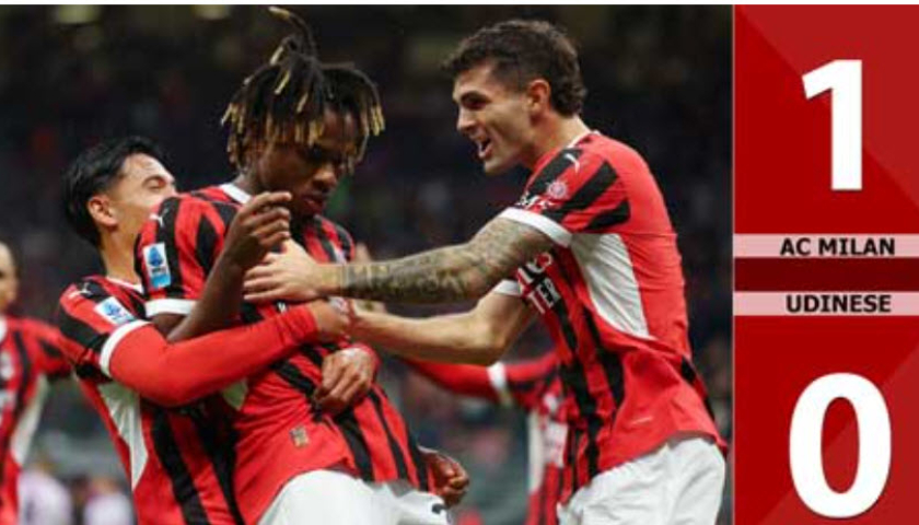 Bàn thắng AC Milan vs Udinese Trên sân nhà, AC Milan đã đả bại Udinese 1-0 tại vòng 8 Serie A 2024/25 bằng pha lập công duy nhất của Chukwueze ở phút 13....
