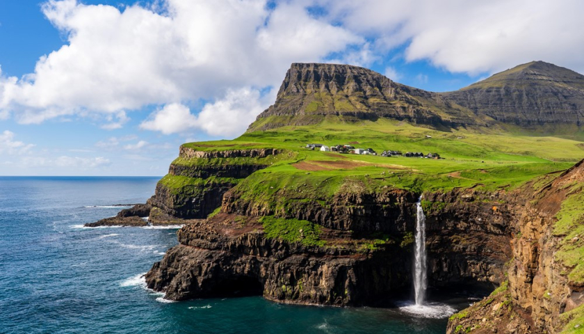 Làng Gásadalur (Đan Mạch) được coi là một trong những ngôi làng có cảnh quan ấn tượng nhất thế giới với thác Múlafossur đổ xuống biển từ vách đá.