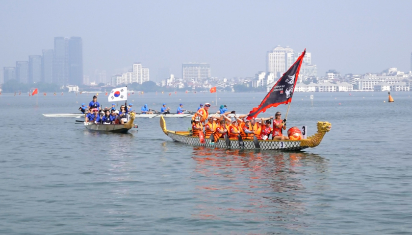 Gần 800 VĐV đua thuyền rồng trên Hồ Tây