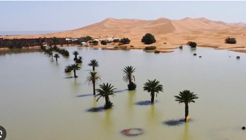 Nơi khô cằn nhất thế giới, sa mạc Sahara đã biến thành đầm nước sau trận mưa lớn kỷ lục.
