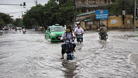 Mưa lớn gây ngập úng nhiều tuyến đường trên địa bàn thành phố Thái Bình
