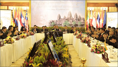 Sáng 16/11, Hội nghị hẹp Bộ trưởng Quốc phòng các nước ASEAN 2012 (ADMM Retreat) đã chính thức khai mạc tại thành phố Seam Riep, Campuchia, với sự tham...