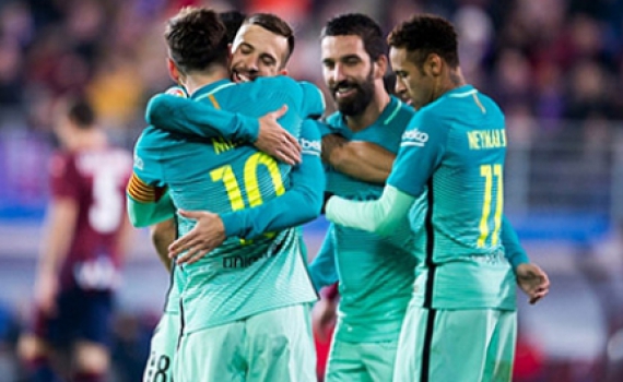 Bộ ba nguyên tử” Messi, Neymar và Suarez đã có ngày thi đấu ấn tượng và giúp Barca giành chiến thắng 4-0 ngay trên sân Ipurua của Eibar.