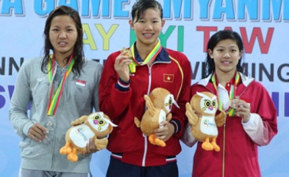 Theo phóng viên TTXVN tại Myanmar, ngay trong ngày thi đấu đầu tiên của môn bơi lội tại SEA Games 27, Nguyễn Thị Ánh Viên đã xuất sắc giành được 2...
