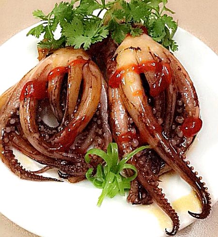 Râu mực giòn sần sật chiên cùng sa tế cay cay tạo thành món ăn lạ miệng, rất đáng để thử.