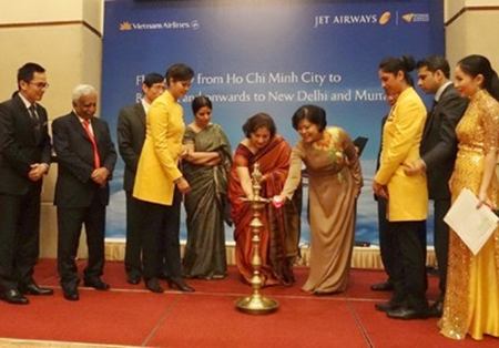 Tối 12/11, tại TPHCM, hãng Hàng không quốc gia Việt Nam (Vietnam Airlines) và hãng Hàng không quốc tế Ấn Độ (Jet Airways) chính thức công bố mở đường bay...